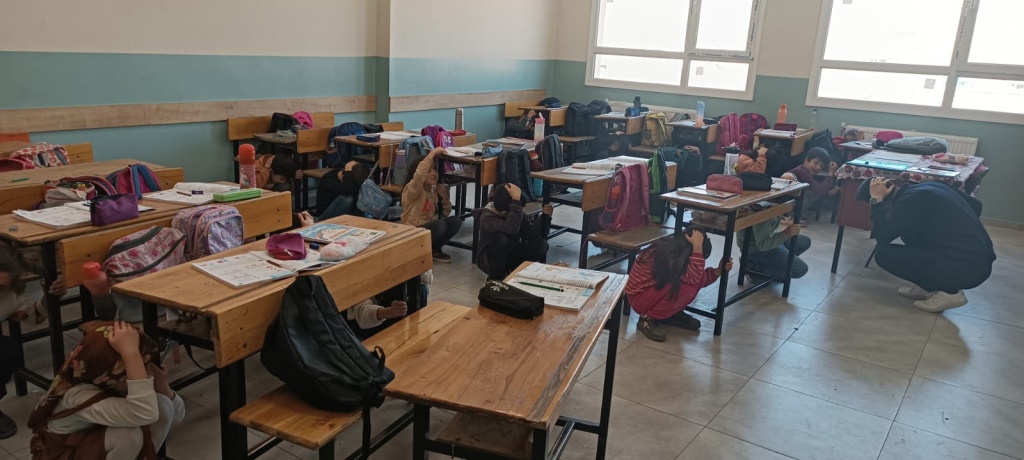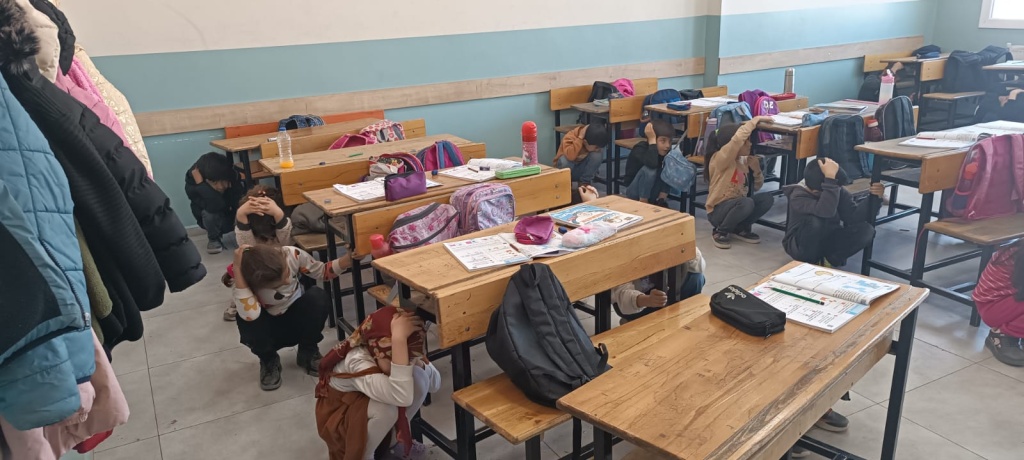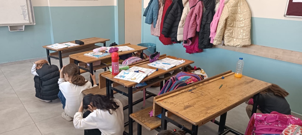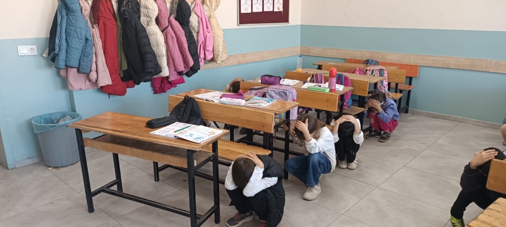 Okulumuzda öğrencilerimizin deprem anında nasıl davranmalarını ve ne önlemler almaları gerektiğini öğretmek amacıyla deprem tatbikatı yapıldı.