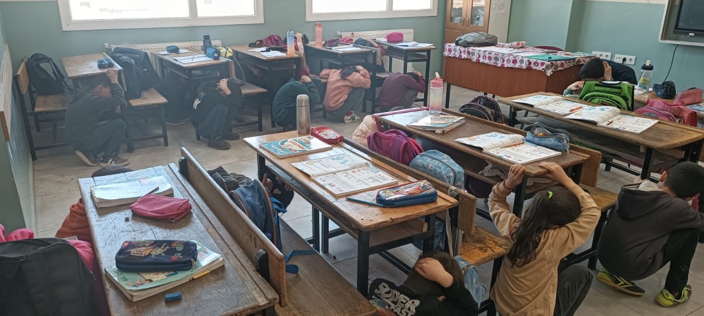 Bilgilendirme aşamasında öğrencilerimize önce deprem konusuyla ilgili video izletildi. Ardından öğrencilerimizin öğrendiklerini uygulamalarını sağlamak amacıyla da deprem tatbikatı yapıldı.